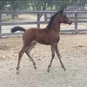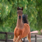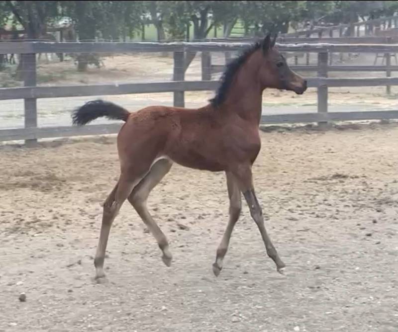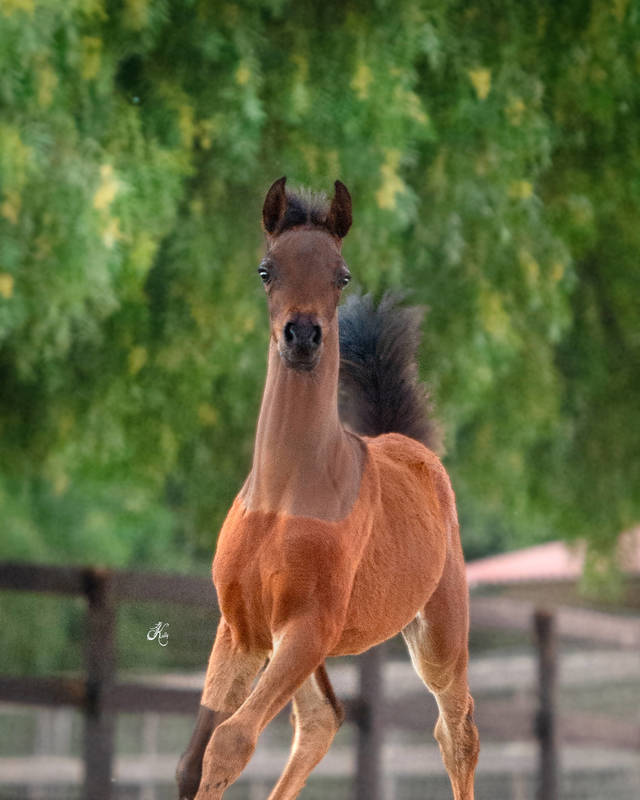 JOIE DE VIE ROSE possessed immense potential to attain world champion status from the moment of her conception. The successful execution of a breeding plan of this caliber is exceptionally rare, and Joie has surpassed all expectations. She stands as a breathtaking dark bay filly, characterized by an absence of white markings, long legs, a compact body, a hind end that is full and rare in today’s Arabians, an extraordinary shoulder, a muzzle refined like a teacup, and a beautifully shaped, short head and face. When you combine these exceptional physical attributes with her natural charisma, Joie emerges as an immensely exciting prospect for both breeding and in the winner's circle on a global stage.