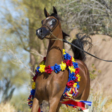 Domyno is a son of Multi Champion Bey Ambition (U.S. National Futurity Champion) and daughter of International Champion producing mare Ghazala El Jamaal.
